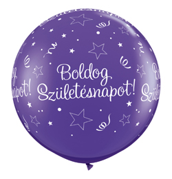 3 feet-es Boldog Születésnapot Shining Star Purple Violet - Sötétlila Szülinapi magyar feliratos printelt Léggömb (2 db/csomag)