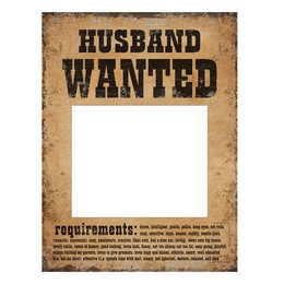 Vicces fotó kellék, "Husband Wanted" és "Wife Wanted" felirattal.